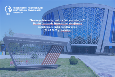 “Inson qadrini ulug‘lash va faol mahalla yili”: Davlat dasturida Innovatsion rivojlanish vazirligiga tegishli bandlar ijrosi (21.07.2022-y. holatiga)